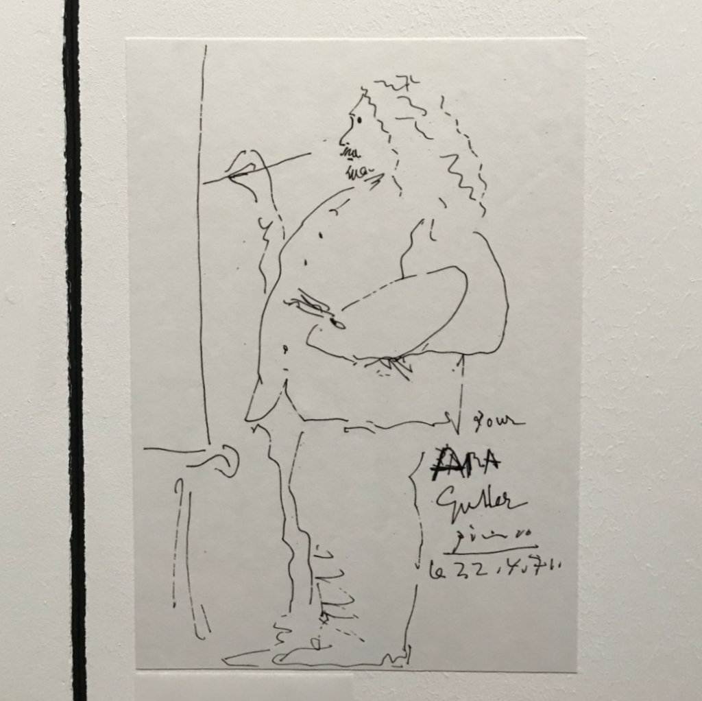 Bir diğer ilginç portre anısı ise ünlü ressam Pablo Picasso iledir Ara Beyin. 1971 yılında Cannes film festivali için gittiği Fransa’da türlü uğraşlar ve aracılar sonucu Pablo Picasso’nun evine gider Ara Güler. Öyle ki aracılardan biriyle Ara Güler tanıştırlar ve Ara Güler ‘ulan Picasso ile görüştürmezsen vururum seni’ diye sitemde bulunur. Pablo Picasso ile sohbet etmek Dali kadar zor olmamıştır. Fakat ilginç bir olay yaşanmıştır ki Ara Güler hayatının en unutulmazları arasında sayar bunu. Picasso, Ara Güler’i Fransız ressam Cezanne’ye benzetir. ‘Dur senin bir resmini çizeyim’ der ve Cezanne ile Ara Güler arası biz çizim tutuşturur eline. Doğrudan Picasso’nun elinden çıkmış bu çizim, Anadolu’daki tek orijinal Picasso resmidir ve Ara Güler arşivinde saklı bulunur.