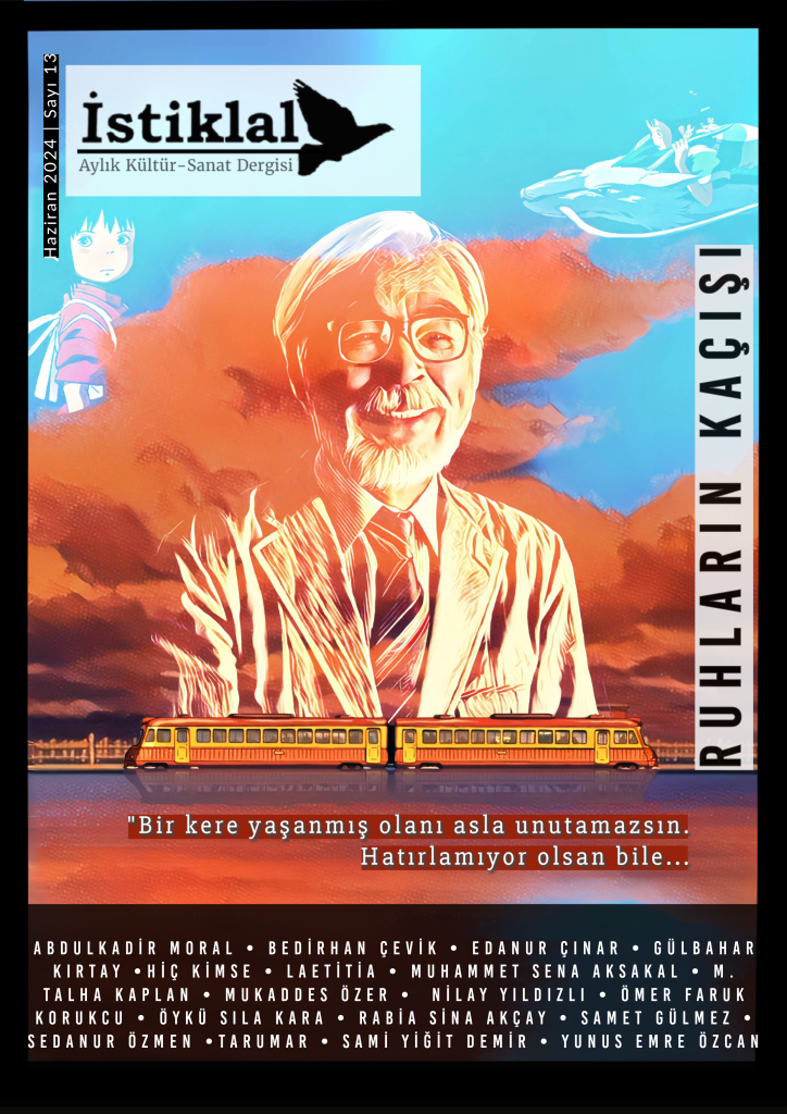 Bir vapurdasın. Suskun yüzün denize dönük. Gözlerin gün batımı gibi Bir çift güneş iki hare arası.. Güzelce süzülüyor bakışların. Bulutlar gibi Bir pamukla işlenmiş tenin… Mavisin. Ve gri Mavi göklerin, bir de gri martıların.. Dışı sert içi çiğ yüreğim, Bir simit martıların için Parça parça eksiltiyorsun Denizin üstünden kuşların ağzına, Sakin sevginden acılara.. Lokma lokma…